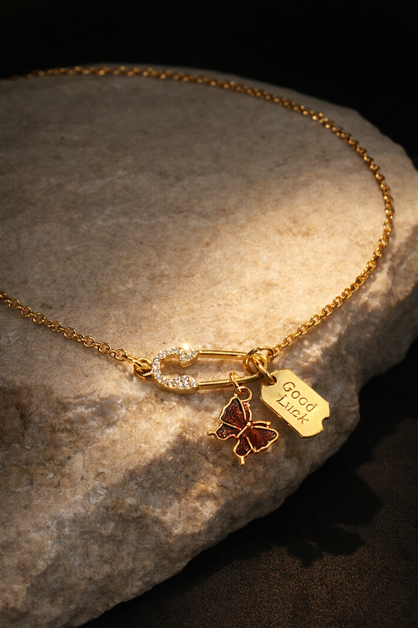 Collar de acero dorado y dijes